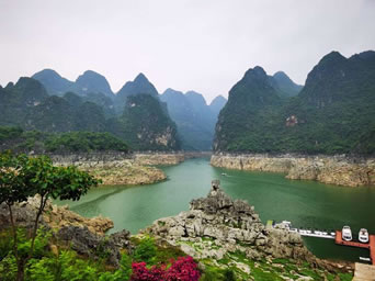 在鄭屯附近的峰林之中,還有古廟、古營盤。頂效附近又有世界罕見的"貴州龍化石"和1.2萬年前的"興義人"文化遺址。峰林之中還有國家級風(fēng)景名勝區(qū)馬嶺河峽谷和省級風(fēng)景區(qū)泥幽石林及萬峰湖風(fēng)景區(qū)。泥曲石林像萬峰林中的一缽花籃。萬峰湖湖面開闊秀麗,港灣幽深,沿岸峰林、石林、溶洞、天坑、森林密布,構(gòu)成眾多的景觀景點。尤其獨特的是一水連三省,民族風(fēng)情濃厚。