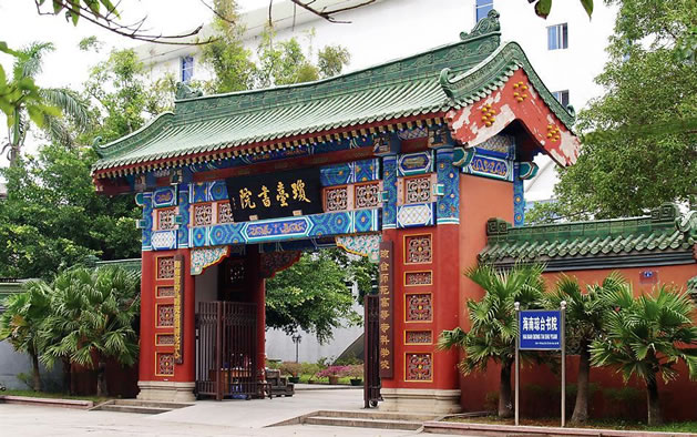 瓊臺書院位于府城中山路8號,相傳是后人為紀(jì)念海南第一才子、明朝大學(xué)士丘濬而建。始建于清康熙四十四年(1705年)據(jù)傳由于丘濬號瓊臺,人稱瓊臺先生,故書院由此得名。 書院現(xiàn)今是瓊臺師范學(xué)院的校址,其主樓奎星樓高二層,綠瓦、紅廊、白墻,是一座具有民族特色的磚木結(jié)構(gòu)建筑,至今保存完好。樓內(nèi)雕梁畫棟,異常別致;樓前綠樹成蔭,環(huán)境秀麗雅靜。著名的粵劇、瓊劇《搜書院》的故事就發(fā)生在此,瓊臺書院隨著《搜書院》而蜚聲海內(nèi)外。