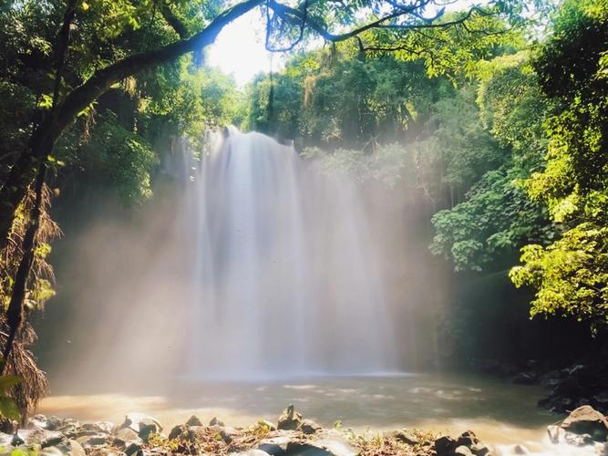 臨高古銀瀑布位于海南臨高縣皇桐鎮(zhèn)居仁村西部附近,距縣城以東20公里。史稱“古銀瀑布”,這一個大潭,有“三潭九曲”之美稱。瀑布系平川落差而致,落差20米,幅面20米,幅寬400平方米;周圍怪石林立,形狀各異,千姿百態(tài)。后面樹木茂密,宛如碧海,屹立在怪石上,枝繁葉茂,覆蓋如亭。錯節(jié)盤根,透出倔強的生命力。處處花香鳥語不斷