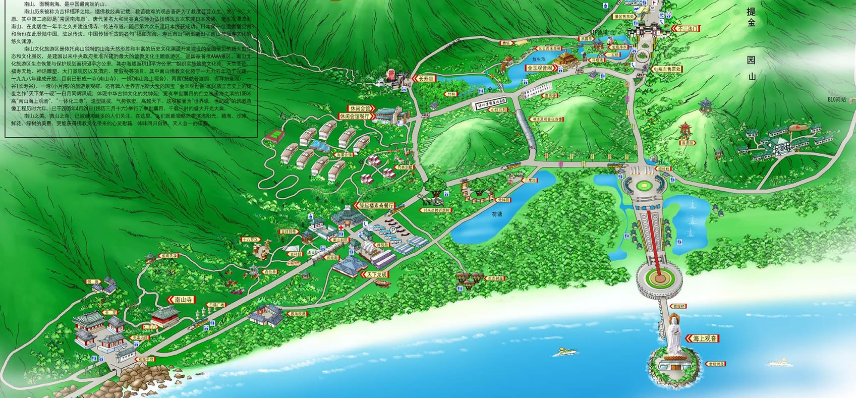 三亞南山風景區(qū)是國家旅游局確定的“中國旅游業(yè)發(fā)展優(yōu)先項目”。它位于中國唯一的熱帶濱海城市三亞市的西部,是全國罕見的超大型文化和生態(tài)旅游園區(qū)。園區(qū)規(guī)劃面積五十平方公里,其中海域面積十多平方公里,由美國紐約國際城市設計公司統(tǒng)籌規(guī)劃,美國經(jīng)濟咨詢聯(lián)合公司提供可行性報告。項目內容策劃分別由中國佛教文化研究所、中國民俗學會、中國歷史博物館、中央民族大學、中國環(huán)境科學院、中國科學院生態(tài)中心完成。該項目是海南省的重點建設項目,同時被三亞南山風景區(qū)是國家旅游局確定的“中國旅游業(yè)發(fā)展優(yōu)先項目”。它位于中國唯一的熱帶濱海城市三亞市的西部,是全國罕見的超大型文化和生態(tài)旅游園區(qū)。園區(qū)規(guī)劃面積五十平方公里,其中海域面積十多平方公里,由美國紐約國際城市設計公司統(tǒng)籌規(guī)劃,美國經(jīng)濟咨詢聯(lián)合公司提供可行性報告。項目內容策劃分別由中國佛教文化研究所、中國民俗學會、中國歷史博物館、中央民族大學、中國環(huán)境科學院、中國科學院生態(tài)中心完成。該項目是海南省的重點建設項目,同時被海南省授予“海南省生態(tài)建設示范工程”、“海南省生態(tài)旅游示范景區(qū)”,并得到了中央有關部門、佛教界、文化界的高度重視。它的建成填補了海南歷史文化旅游的空白,進一步突出海南大生態(tài)旅游優(yōu)勢,為中國旅游添光增彩。