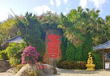 長壽谷,也叫鰲山壽谷,位于南山東麓,其地貌依攀山勢,呈谷狀縱伸。谷線全長2300米,堪稱熱帶雨林奇觀。其間鳥鳴不斷、溪水長流、林木郁郁蔥蔥、巖石突兀奇特。設計者巧用天然形勝,從不同角度,以“流動”和“靜止”的狀態(tài)揭示著傳統(tǒng)“壽”文化的內核,融匯福壽文化于熱帶雨林奇觀。其主要景觀包括:“無量壽佛”、“流水尊者”;著名書法家啟功先生所書之“壽比南山”巨大石刻、“百歲階”、“賀壽堂”等,無一不體現(xiàn)中國傳統(tǒng)文化中增福添壽的美好祈福。是老年游客必游覽駐足的景點。