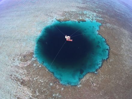 三沙永樂龍洞,漁民俗稱永樂龍洞,學術界稱之為“藍洞”,有多個。其中最知名的一個位于三沙市西沙群島之永樂環(huán)礁的晉卿島—石嶼礁盤的中間,深達300.89米,為世界上海洋藍洞之最。另外,銀嶼礁(森屏灘)礁盤上也有一深坑,水呈藍黑色,深不見底,漁民稱為龍坑。
