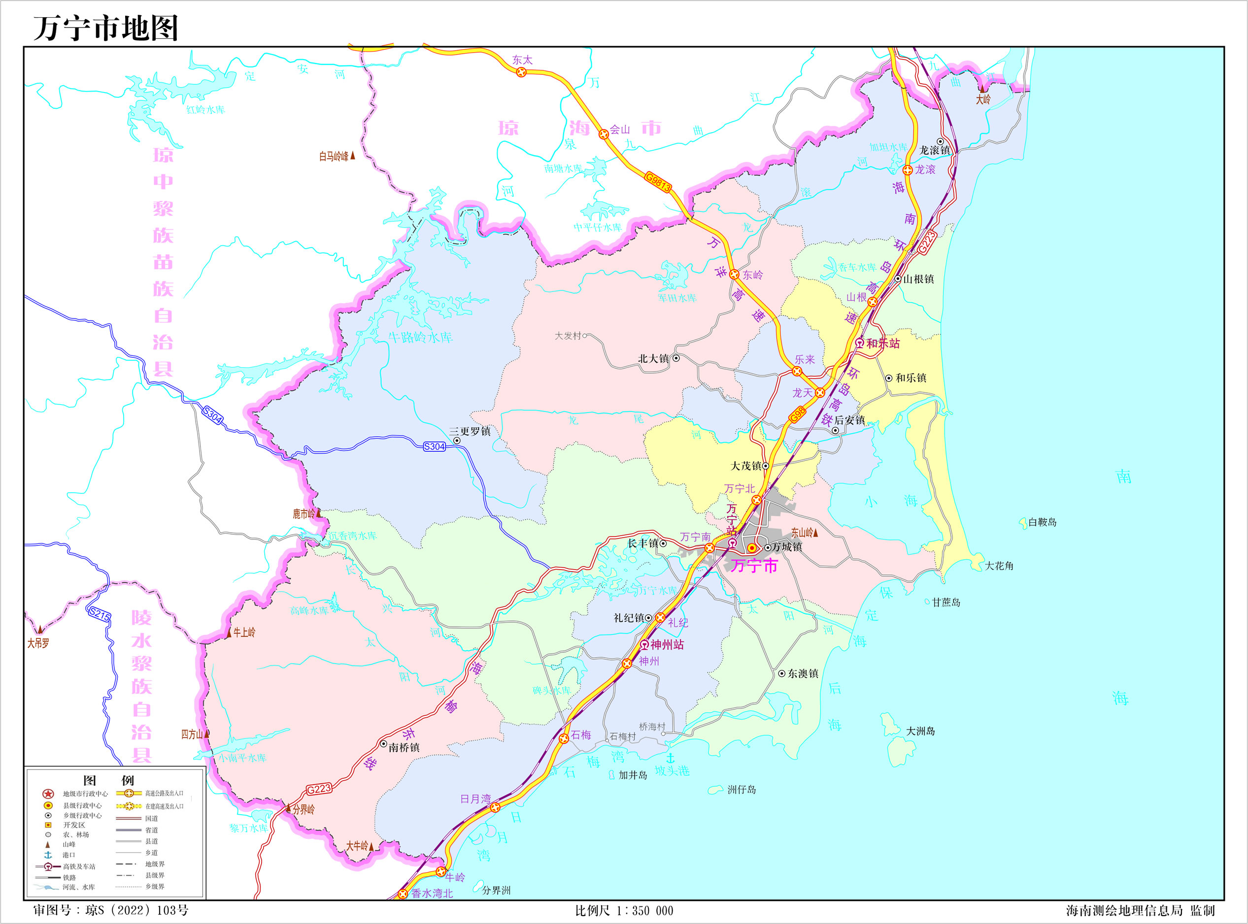 1996年8月5日,撤萬寧縣,設(shè)萬寧市,以原萬寧縣的行政區(qū)域?yàn)槿f寧市的行政區(qū)域。