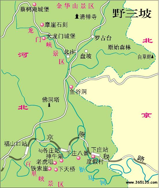 這里有酷似桂林的拒馬風(fēng)光,有世界罕風(fēng)的峽谷奇觀,有幽深莫測(cè)的溶洞,有神秘難解的魚(yú)泉,還有蒼勁的摩崖石刻,巍峨的長(zhǎng)城,保存完好的平西抗日烈士陵園等人文景觀,當(dāng)?shù)孛耧L(fēng)古樸,獨(dú)具特色,堪稱(chēng)野三坡“七十二景”景景奇特,“八十一峰”峰峰壯觀,是一處綜合性的自然美的整體,重點(diǎn)突出一個(gè)“野”字,即登野山,觀野景,宿野舍,食野味,玩野趣。素有“世外桃源”之稱(chēng)。
