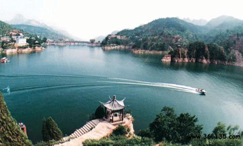 太行三峽—京娘湖 東太行山武安市京娘湖,據(jù)馮夢(mèng)龍編《警世通言》記載,宋太祖趙匡胤千里送京娘曾路宿于此山中。京娘是山西永濟(jì)人,年方十七歲, 隨父母去曲陽燒香還愿遭劫,幸遇趙匡胤拔刀相救,千里護(hù)送,京娘感恩不盡,欲以終身相托。然而趙曰:“賢妹非是俺膠注鼓瑟,本為義氣千里相送,今若就私情與那個(gè)響馬何異?況施恩圖報(bào)非君子所為 。”京娘道:“恩兄高見,妾今生不能補(bǔ)報(bào)大德,死當(dāng)銜環(huán)結(jié)草。 ”于是京娘投湖自盡,(后被追封為貞義夫人)京娘湖亦由此得名。 湖面呈倒“人”字型,分東西兩支,水面2445畝,水深20-50米。中間 山島建有“山頂公園”清山綠水與藍(lán)天白云相互輝映,薈萃人典故, 使此地有“太行三峽”之美稱,尤其是巖壁上當(dāng)年趙匡胤“云崖寄志 ”的題詞手跡“欲出未來光辣撻,千山萬水如火發(fā)。須臾走向天上來 ,趕卻殘星趕卻月”。及其它歷史傳說,使景區(qū)更加神秘誘人。這里 層巒疊嶂,群峰竟秀,波光粼粼,林林茂盛。夏季炎熱之時(shí),清爽宜 人,為避暑勝地。