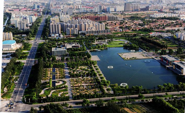 公園門前為兩個噴泉,主路兩側(cè)設(shè)置兒童游樂區(qū),配備了碰碰車、卡丁車、森林漂流、海盜船等游樂設(shè)施。公園中部為占地100畝的人工湖。以人工湖為中心,湖西土山上新建文化碑林,湖北設(shè)有動物觀賞區(qū),湖東側(cè)草坪大小各異8只漢白玉大象雕塑栩栩如生,東北部建有巖石園,南側(cè)建以清代四合院格局的“京韻風(fēng)情”俱樂部,豪華典雅,古色古香。園內(nèi)還陸續(xù)開辟了青年林、巾幗林、八一林、親子林、公仆林、市民林等多塊紀(jì)念林地。