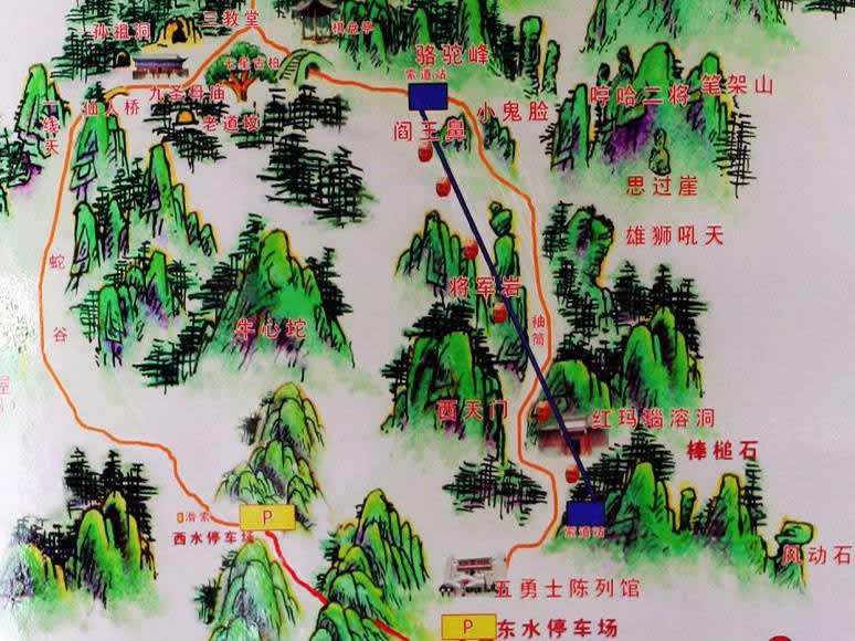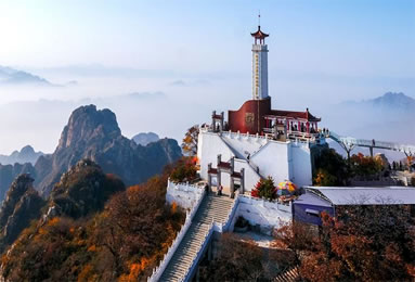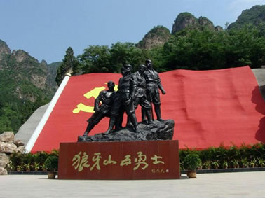 狼牙山原名郎山,因漢武帝時太子劉據(jù)之子為躲避“巫蠱之獄”避難于此而得名。西漢武帝晚年多病,疑其左右為巫蠱(埋木偶人,詛咒害人)所致,涉及皇后、太子、公主等親屬,太子劉據(jù)自殺,其子遠遁該山,故名。郎山下原有西晉太康元年(280)詔錫郎山君(漢武帝孫)及其子觸鋒將軍父子法祀碑與郎山君祠、觸鋒將軍廟。郎與狼諧音,亦名狼山。因山峰聳立,危峰參差迭起似狼牙,又稱狼牙山,為古易州十景和古城保定八景之一的“狼山競秀”。山上不但有風動石、仙人橋、南天門等自然奇觀,還有老君堂、三教堂、蠶姑廟等眾多的文物古跡。狼牙山五勇士之壯舉,名聞海內(nèi)外,為國家森林公園和愛國主義教育基地,國家紅色旅游熱線景區(qū)。緬懷先烈,銘記歷史,愛我中華,狼牙山風景區(qū)決定每年9月25日狼牙山五勇士(馬寶玉、葛振林、宋學義、胡德林,胡福才)跳崖紀念日當天免費對游客開放!拔∥⊙嗌礁,瀟瀟易水寒。英雄五壯士,威震狼牙山。”1941年9月25日五勇士為了掩護部隊撤離他們面對步步逼近的日偽軍,寧死不屈,毀掉槍支,義無反顧,縱身跳下數(shù)十丈深的懸崖。