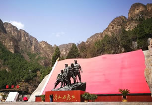 抗日戰(zhàn)爭時期,狼牙山是著名的抗日根據(jù)地。1941年9月25日,馬寶玉、胡德林、胡福才、葛振林、宋學義五名戰(zhàn)士為掩護主力部隊轉(zhuǎn)移,被敵人逼到狼牙山頂峰,跳下了懸崖。這就是著名的狼牙山五勇士。五勇士跳崖后,馬寶玉、胡德林、胡福才為國捐軀,壯烈犧牲,葛振林、宋學義被懸崖上的樹枝掛住而得救。