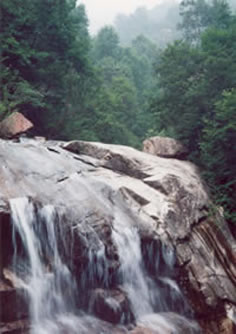 駝梁二十里長(zhǎng)峽中飄舞著數(shù)百條瀑布。人說(shuō),瀑是山的舞蹈,是有飛瀑則顯得靈秀而生動(dòng)。駝梁也是正是有“一山蒼翠,百溪亂渡,萬(wàn)瀑齊飛”之譽(yù)才在北方景區(qū)中獨(dú)領(lǐng)風(fēng)騷。駝梁無(wú)處不飛瀑,從谷底到山巔,大大小小的瀑布,如條條白絹飄舞在滿目翠綠的幽峽中。人字瀑、白龍瀑、三疊瀑、五指瀑、通天瀑……千姿百態(tài),飛珠濺玉,清溪漱石,銀簾披翠。尤讓人激動(dòng)不已,留戀忘返的當(dāng)數(shù)駝梁“六月冰瀑”,冰川映紅花實(shí)為人間稀有,每年6月底,時(shí)節(jié)將近時(shí)期,冰瀑才徹底消失。