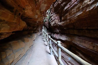 峽長(zhǎng)4000米,一般寬1到2米,最窄處只有十幾厘米,壁高150米,這里紅巖絕壁,險(xiǎn)峰對(duì)峙,黃巢曾在此聚兵起義,抬頭仰望,青天一線,俯視腳下,水流不斷,相隔不遠(yuǎn)便有一道瀑布,溪水清澈見(jiàn)底,清涼透骨。