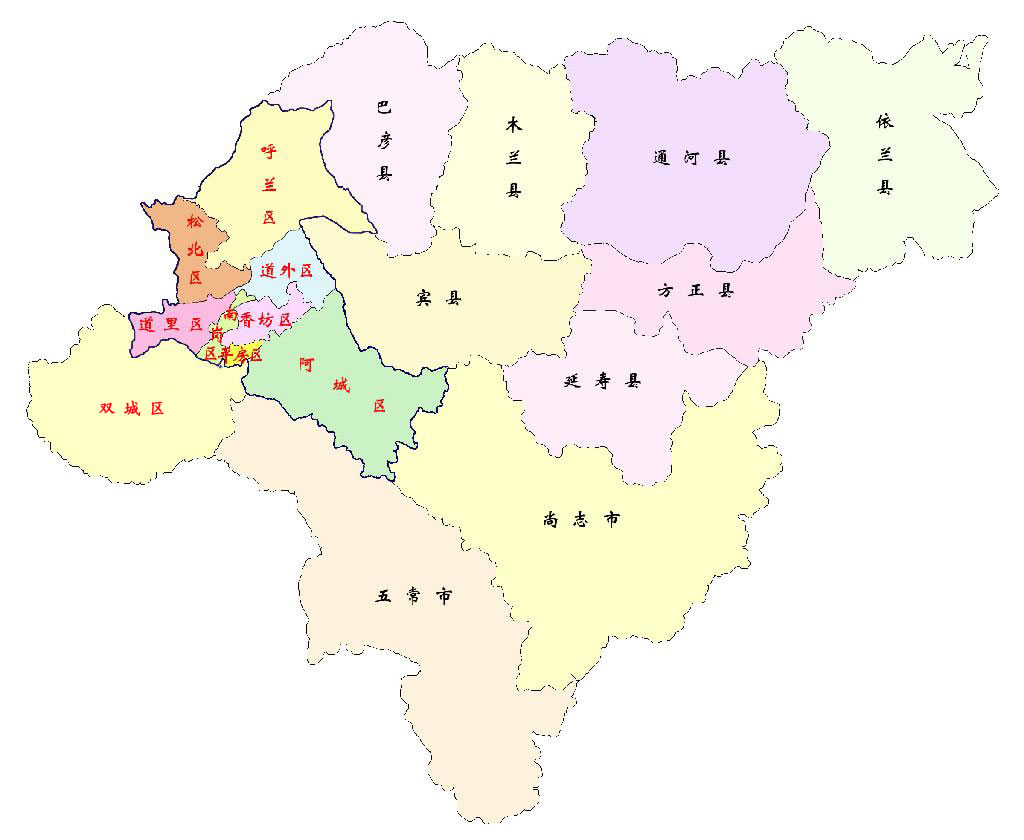 哈爾濱市轄9個(gè)市轄區(qū)、7個(gè)縣,代管2個(gè)縣級市: