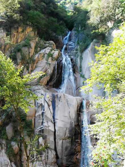 六疊瀑是畫(huà)眉谷景區(qū)秀美飛瀑之一。它是巖層斷裂并流水長(zhǎng)年下切侵蝕形成的多級(jí)瀑布,分六級(jí)跌落,故名“六疊瀑”。