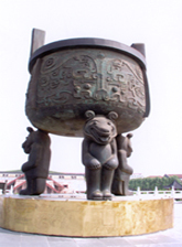 新鄭是鼎器之源,中國最早的鼎器出自八九千年前新鄭的裴李崗遺址。五千年前,新鄭人軒轅黃帝最早將陶鼎炊器制成銅鼎禮器。鼎是物質(zhì)文明、政治文明和精神文明的象征。其余8鼎,為四方四圓,通高1.25米,獸面紋飾,分別取仕、智、豐、愛、安、嗣、壽、財之名,以八卦之位環(huán)列黃帝寶鼎四周。楹聯(lián)長廊位于黃帝寶鼎壇區(qū)東西兩側(cè),各長150米,寬5米,楹聯(lián)200幅,展示名人大家手筆,歌頌黃帝功績,心系故里,其中多為書法藝術(shù)做品。