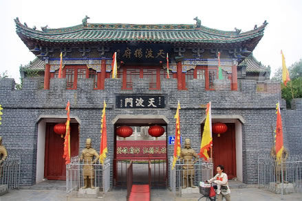 天波楊府是北宋抗遼名將楊業(yè)的府邸,位于宋朝首都東京(今開(kāi)封市)城內(nèi)西北隅,天波門的金水河旁,故名“天波楊府”。因楊業(yè)忠心報(bào)國(guó),楊家將世代忠良,宋太宗趙光義愛(ài)其清正剛直,不善巧言諂媚的性格,敕在天波門的金水河邊建無(wú)佞府一座,賜金錢五百萬(wàn)蓋“清風(fēng)無(wú)佞天波滴水樓”,并親筆御書(shū)“天波楊府”匾額。為國(guó)家AAAA級(jí)景區(qū)。