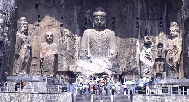 龍門石窟鑿于北魏孝文帝遷都洛陽前后(A.D.493年),嗣后歷經(jīng)西魏、東魏、北齊、隋、唐、五代的營造,從而在這里行船那嘎了南北長達(dá)一公里、具有兩千余座窟龕和十萬余尊造像的石窟遺存。這歷時500多年的營造過程中,包含北魏和盛唐兩個造像的高潮階段。至今,保存在伊闕兩山的這數(shù)以千計的像龕,絕大多數(shù)都是這兩個時代的文化遺產(chǎn)。