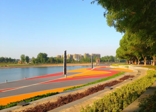 沙澧河風(fēng)景區(qū)具有豐富的景觀要素、厚重的歷史文化積淀以及濃郁的人文生活氣息,景區(qū)內(nèi)沿河岸廣泛布綠,植被覆蓋率達(dá)98%以上,并修建有觀光大道沿河主題公園,沿河八大主題公園是景區(qū)的核心,分別是:西灣晨霞、芳風(fēng)雅頌、覽古涵遠(yuǎn)、醴泉夕照、濠濮快意、馥風(fēng)澄爽、青岫寫秋、揖峰罨畫。構(gòu)建出了“城在水中映,水在綠中行,人在畫中游”的人間仙境。