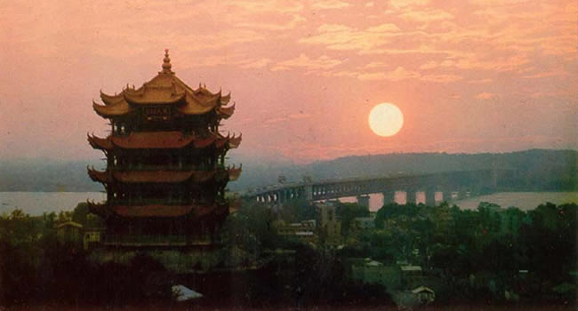 李白寫下的詩詞與黃鶴樓有關(guān)的不下五首,其中有一首《與史郎中欽聽黃鶴樓上吹笛》:“一為遷客去長沙,西望長安不見家。黃鶴樓中吹玉笛,江城五月落梅花。”從此,“江城”便成為武漢的美稱。