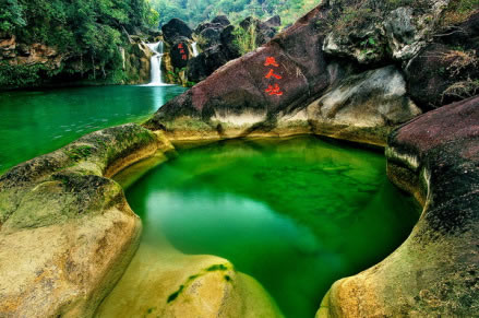 美人谷由一系列的深潭、瀑布、奇石、幽洞組成,是一個(gè)以山水為主的峽谷型生態(tài)休閑游覽區(qū),特別是由數(shù)十個(gè)氣勢(shì)磅礴的瀑布組成的瀑布群,成為華中地區(qū)的奇觀。