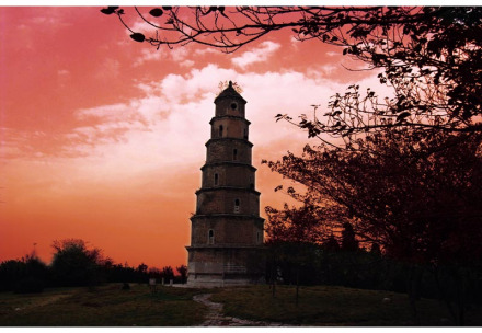 東寶塔是荊門(mén)今存的唯一一處具有千年歷史的地面文物,建于隋開(kāi)皇十三年(公元593年)。寶塔通高33.3米,底部周長(zhǎng)30.6米,七層四面八角,隔面設(shè)窗,攢尖式塔頂。塔基座周長(zhǎng)31.2米,高0.76米;隙加惺殢涀殢涀私歉鞯褚蛔鹜兴饎。底層門(mén)楣有石刻“長(zhǎng)林頭角”四字,自底層有螺旋狀青石階梯上塔頂(海拔260米)。