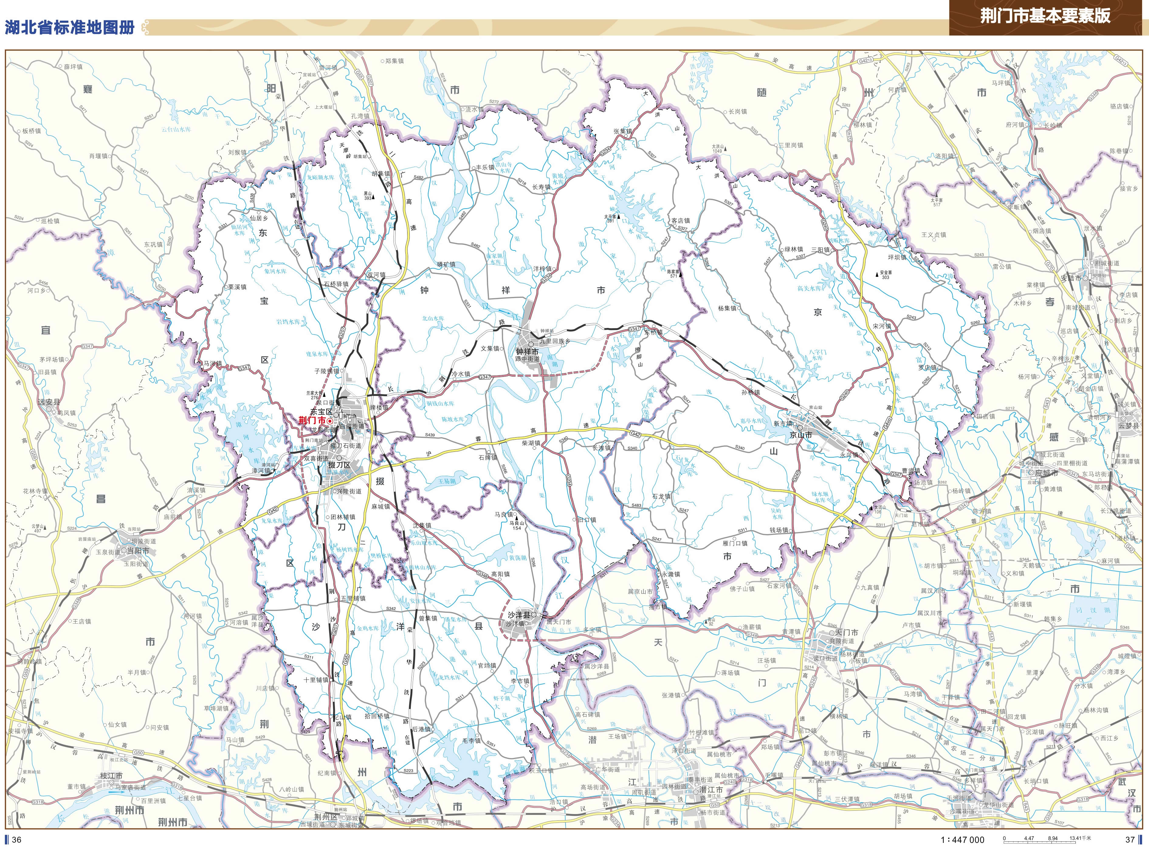 荊門(mén)市轄2個(gè)市轄區(qū)、1個(gè)縣,代管2個(gè)縣級(jí)市: