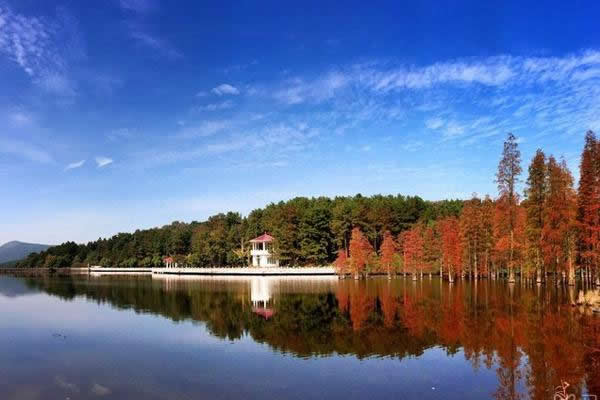 10:10知音谷林蔭小道,光影斑駁,曲徑通幽,桃李爭艷、迎春花黃,爛漫花事,溪流潺潺。瀏撫琴石,子期草廬,試斧石,山人居,聆聽“高山流水遇知音”的唯美故事,感受千年前俞伯牙與鐘子期的真摯友情。登扶云梯,攀江漢平原第一高峰——龍霓山,鎖情臺開天下第一同心鎖。楚望亭遠眺山鄉(xiāng)田園風光。森林穿越,過九真關;行琴人谷,詩竹軒看春筍破土,翠竹拔節(jié),氧浴竹海。賞當?shù)孛視。過九曲橋,徜徉山水之間。鴛鴦壩下高爾夫球場瀟灑揮桿(自費),體驗貴族運動的高雅情趣。賞連理湖美景,青山秀水,滿山含翠。檫木花開,嫩黃朵朵,猶如繁星點綴在山野之間。
