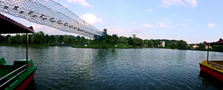 連理湖,三面環(huán)山,一面向沖,水碧林翠,鳥語花香,宛若瑤池,F(xiàn)今,白玉欄桿環(huán)湖而圍,天人閣、合一廊、九曲橋、回眸橋等景觀,與湖光山色渾然一體,成為國內獨一無二的大型水上浪漫婚典勝地,特制的大彩船、小花船上,可舉辦各式婚典。