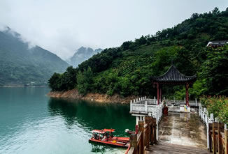 清江支流丹水,因其水淺,清澄得可見河床鋪滿的亂石,兩岸山巒起伏,郁郁蔥蔥,現(xiàn)成為游人漂流的絕佳去處。丹水最寬處有十幾米,最窄處僅四五米,大雨過后,河水水量較大,水流湍急,是漂流的好時候,但較危險。2-3人乘坐一充氣皮筏從上游順流而下,在水面闊、水流緩處,可一邊蕩漿一邊仰望兩岸幽靜的景色,或低頭搜尋水底的小魚小蟹;而水面窄處,水流因亂石的阻礙變得浪花飛濺,駕著皮筏,一不小心,就會撞上大石頭,有時皮筏因水流太急而不可控制,那種緊張刺激的感受,是長期生活在城市中的人們很難體會到的。與小三峽、神農(nóng)溪漂流顯著不同的是,小三峽乘機(jī)動船,機(jī)器的噪聲,很難讓人靜心去欣賞其山其水的瑰麗,神農(nóng)溪是由纖夫拉纖,將“豌豆角”型木船拉至上游,然后由船工撐船漂流而下,游人只能仰望山的幽奇,水的清亮,卻不能親自感受駕舟乘風(fēng)破浪的驚險刺激。