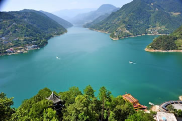 清江是長江的一顆明珠,“水色清明十丈,人見其清澄,故名清江!彼l(fā)源于鄂西利川市龍洞溝,流經(jīng)恩施、長陽、巴東,在宜都市注入長江,全長423公里,有 “八百里清江美如畫”的盛譽。流經(jīng)長陽的清江水域長約148公里,在縣城龍舟坪西11公里處的清江上,1994年建成隔河巖水電站,大壩長165米,高150米。隔河巖大壩的建成,既可以獲取電能,亦可以防洪蓄水,在1998年長江遭遇百年大洪水時,隔河巖大壩為蓄水分洪作出了很大貢獻(xiàn)。