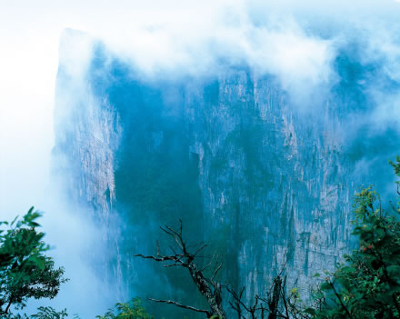 天門山內(nèi)一千米以上的山峰有近四十個,其中最高海拔1518.6米,最低海拔1349米,相對高差僅170米。
