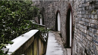 2、月城城墻壁上有八個(gè)大炮洞,火炮隱置洞內(nèi),可避免敵炮的轟擊,士兵也比較安全。