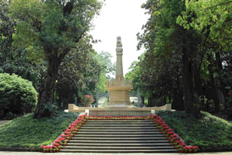 《歷史名人石刻畫廊》,它刻繪了33位對(duì)我們湖南有過突出貢獻(xiàn)的歷史名人,其中湘籍16人。炎帝神農(nóng)氏,品百草造福于民,他晚年因誤食一種叫“火焰草”(又稱“斷腸草”)的植物而謝世于湖南,炎帝陵就在我們湖南株州的炎陵縣;朱熹、張軾為長沙岳麓山下的中國古代四大書院之一的岳麓書院主講,朱洞為創(chuàng)始人;李芾,長沙(古稱潭州)知州既湖南安撫使,南宋末期人,在元兵攻打長沙三日守城無望的情況下,領(lǐng)全家十九口人集體自盡,以示忠烈;下面三位都是岳麓書院的高材生:曾國藩,湖南湘鄉(xiāng)人,清朝道光年間洋務(wù)派首領(lǐng)之一,創(chuàng)建了 “無湘不成軍”的湘軍,曾瘋狂鎮(zhèn)壓太平軍,后被捻軍所敗,但他的為人處世之道歷來被后人所學(xué)習(xí)、傳頌,所著文章多收入《曾文正公全集》中;魏源,湖南隆回人,提出“師夷長技以制夷”,在林則徐支持下著有50卷《海國圖志》,影響至現(xiàn)代;郭嵩燾,湖南湘陰人,清末外交官,近代中國向西方國家派出的第一位常駐使臣,出使(新加坡)期間,取用公款只工資和房租兩項(xiàng),并說過:“廉才君子以自責(zé),不宜以責(zé)人;惠者君子以自盡,不宜以望于人”,時(shí)稱名言。