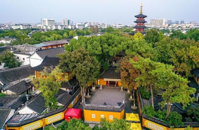 寒山寺位于蘇州市姑蘇區(qū),始建于南朝蕭梁代天監(jiān)年間(公元502~519年),初名“妙利普明塔院”。寒山寺占地面積約1.3萬(wàn)平方米,建筑面積三千四百余平方米。