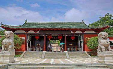 位于五華頂西北山坡上,林木茂盛,種類繁多,清明時節(jié),連翹盛 開,用連翹搭建的八卦隧道,金光閃閃,滿宮盡帶黃金甲。中部建有鵝暖石八卦圖、琉璃瓦八卦亭。園林景觀按照八卦迷宮原理設(shè)計建造,故名八卦迷宮。