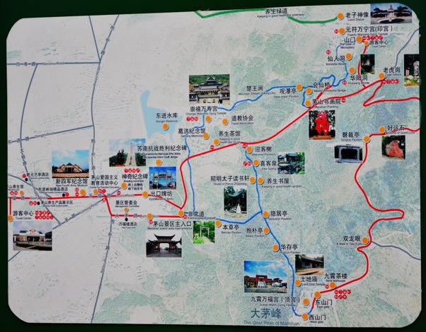 茅山,是環(huán)境優(yōu)美的風(fēng)景勝地。茅山自然風(fēng)光清新秀美,山區(qū)形勝獨(dú)特,枝繁葉茂,景色迷人,自古就有九峰、十九泉、二十六洞、二十八池之美景。這里的山不高卻秀雅,這里的水不深卻澄清。春游茅山,山林滴翠,草木芬芳。滿世界的嫩黃襯托這一處綠山,滿山間的野花給了這山林一路的狂想。薄霧輕如紗,夕陽(yáng)宛如畫。夏游茅山,綠樹成蔭,蔥蘢一片。你可以在綠樹掩映下的九曲十八彎上揮汗如雨,欲與大山試比高;你也可以朝觀日出,暮賞彩云。雨后初晴,但見一絲薄云在深谷幽林間繚繞,此時(shí)山上的樹木閃爍著猶如水晶般晶瑩的綠。秋游茅山,天高云淡,色彩斑斕。林間飄落一地的楓葉定會(huì)引起你無限的遐想,看蘆葦花在風(fēng)中搖曳著輕盈,聽喜客泉水叮咚暢響,感受生命在不經(jīng)意的平淡中輪回。冬游茅山,銀裝素裹,霧松飄情。抑或暖陽(yáng)普照,滿山林充斥著蓄勢(shì)待發(fā)的理想。萬簌俱靜中聆聽那道家仙樂,大有“花飛佛地三千里,人在瑤池十二層”之感。