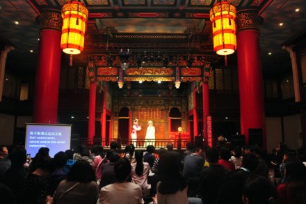 民俗茶社:民俗茶社是一座全木結構仿古茶社,精湛地展現(xiàn)了非物質文化遺產項目——香山幫傳統(tǒng)建筑營造技藝。茶社完全按照老式茶社布局修建,天井蘇式彩畫艷麗奪目,戲臺金碧輝煌,木雕隔斷精致巧妙,池心敞亮寬闊,包廂整肅典雅,是觀眾欣賞江蘇省表演類非遺項目和品味江蘇省飲食技藝類非遺項目的最佳場所,是“動態(tài)”展示非物質文化遺產的文化空間。在這里,將定期上演江蘇特有的曲藝、傳統(tǒng)戲劇折子戲和民間音樂等項目,如蘇州評彈、南京白局、昆曲折子戲、江南絲竹等等;并采用傳統(tǒng)茶館中“葷茶館”的形式;把南京雨花茶、蘇州洞庭碧螺春、連云港云霧茶等進入非遺名錄的茶飲和其他飲食項目同時納入其中。演出時間為每天下午14:30—15:30,具體演出項目請關注屏幕導覽和南博網(wǎng)站。