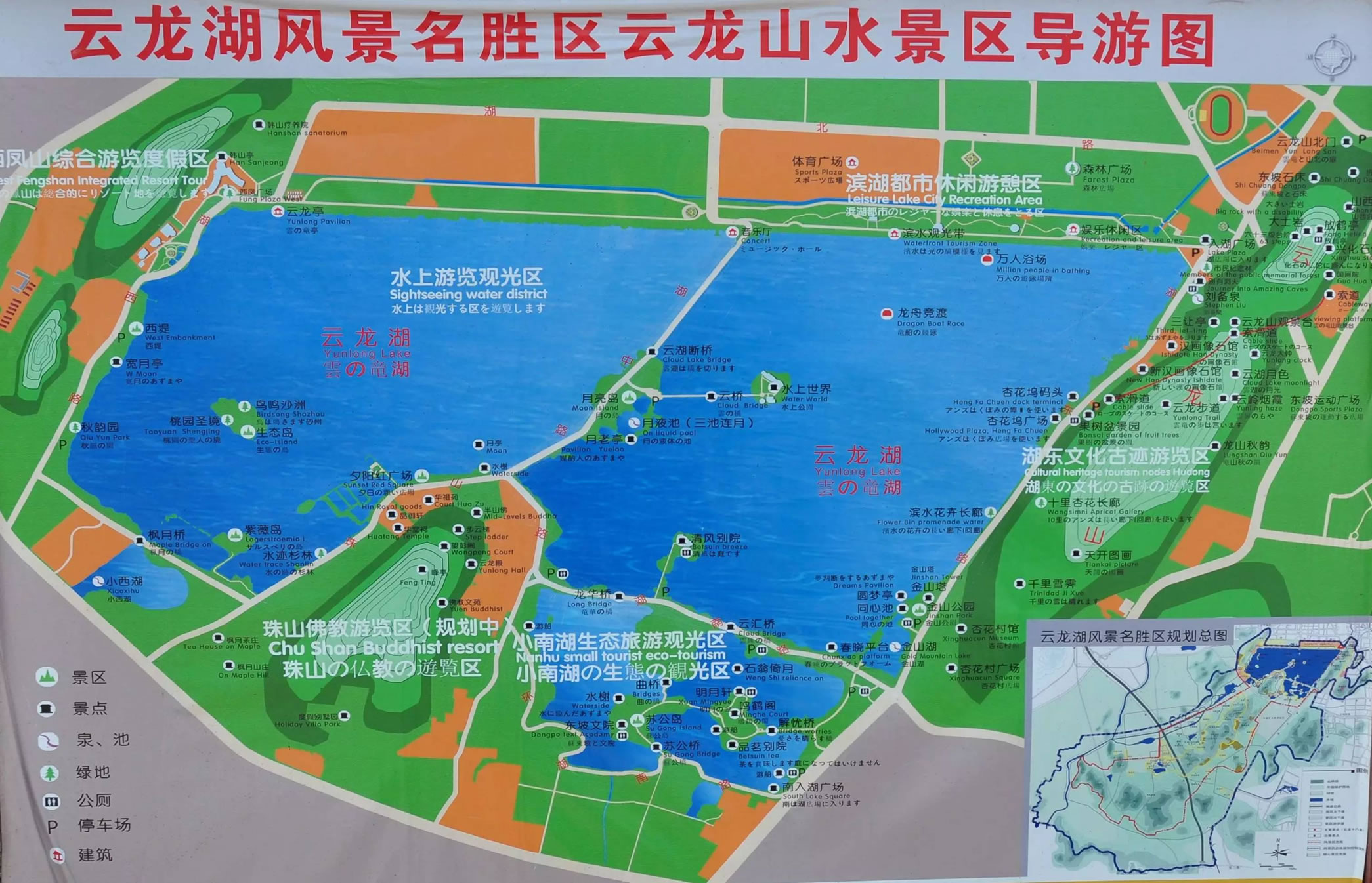 小南湖:是云龍湖的有機(jī)組成部分,它位于云龍湖南岸,其水全部來自云龍湖,兩者之水從橋下相通,但兩湖之間又被一條道路和綠化帶隔開,所以又可單稱小南湖。小南湖原是云龍湖南部的一大片洼地。