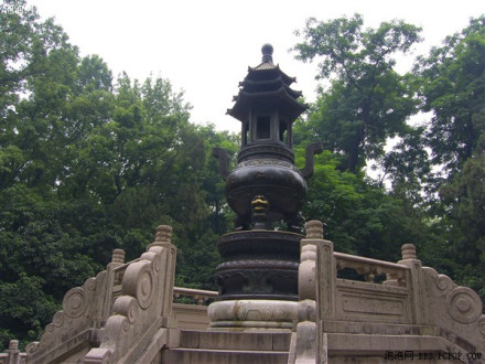 祭堂前面東西兩側(cè),矗立一對(duì)高大的華表,是用福建花崗石雕琢而成的。華表高12.6米,下部直徑2米,上部直徑1米。華表的斷面為六角形,六面均飾浮雕卷云紋。遠(yuǎn)遠(yuǎn)望去,華表仿佛直插青天,富有很強(qiáng)的立體感。大石階邊的兩側(cè)石座上,各置紫銅帶蓋的銅鼎一尊。華表與銅鼎,把祭堂襯托得更加宏偉壯麗,又增添了肅穆和寄托哀思的氣氛。