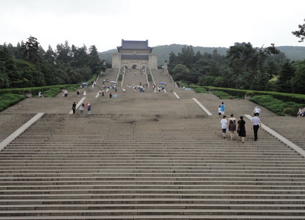 陵墓入口處有高大的花崗石牌坊,上有孫中山手書的“博愛”兩個(gè)金字。從牌坊開始上達(dá)祭堂,共有石階392級(jí),代表著當(dāng)時(shí)中國(guó)的三億九千兩百萬同胞;8個(gè)平臺(tái),象征著三民主義五權(quán)憲法。臺(tái)階用蘇州花崗石砌成。