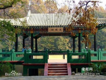 流徽榭,又名水榭,是中山陵紀(jì)念性建筑之一,建于1932年冬,它由中央陸軍軍官學(xué)校捐款建造,由陵園工程師顧文鈺設(shè)計(jì)。流徽榭三面臨水,一面傍陸,流徽榭以石階與岸相連。平面呈長(zhǎng)方形,長(zhǎng)13米,寬9米,四周圍有約一米高的藍(lán)色欄桿;卷棚頂,上覆白色琉璃瓦;立柱表面均為藍(lán)色;檐椽施以白漆藍(lán)紋;梁枋、雀替均施以彩繪;地面鑲嵌紅色八角形小瓷磚!傲骰臻俊比齻(gè)楷書大字,是由黃埔軍校第一期學(xué)員徐向前元帥親筆題寫的。