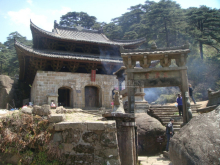 時至唐朝,道教被朝廷奉為國教,士穿行往返于大江南北,三清山風(fēng)景名勝區(qū)的道教也隨之興盛起來,香火不斷,朝山香客絡(luò)繹不絕。唐(周)圣元年(639),朝廷為了加強統(tǒng)治,割衢州須江(今稱為江山市)之南鄉(xiāng)、常山之西鄉(xiāng)和饒州弋陽之東鄉(xiāng),設(shè)玉山縣,遂將三清山風(fēng)景名勝區(qū)劃為玉山縣所轄。其后,方士將化緣所得,在葛洪結(jié)廬煉丹之處營建了三清山風(fēng)景名勝區(qū)上第一座道教建筑--老子宮觀(此觀被稱為“三清福地”),進一步鞏固了三清山風(fēng)景名勝區(qū)在道教史上的重要地位。北宋寧真宗篤信道教,奉老子為太上老君混元上德皇帝。此時,在三清山風(fēng)景名勝區(qū)一帶開始出現(xiàn)成批的道教建筑。方士們?yōu)榱思o念葛洪開山之功,在山上建起了葛仙觀,內(nèi)中供奉葛仙翁和李尚書石像;同時建起的還有福慶觀、靈濟廟。尤其值得一提的是,方士們在天門峰的懸崖之上,用天然花崗巖雕干砌成一座六層五面的風(fēng)雷塔,此塔歷盡千年風(fēng)雨,至今巍然不動,被譽為三清山道教建筑中的一顆燦爛明珠。