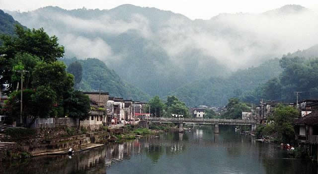 始建于西漢末年的瑤里古鎮(zhèn),群峰環(huán)抱,如畫如屏,南踞象山,北臥獅山,瑤河穿鎮(zhèn)而過。數(shù)百幢明清古建筑依山傍水、錯(cuò)落有致地分布在瑤河兩岸,一律的徽派建筑風(fēng)格,飛檐翹角,粉墻黛瓦,掩映在青山綠水之中。