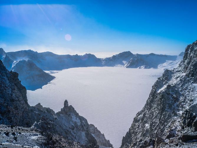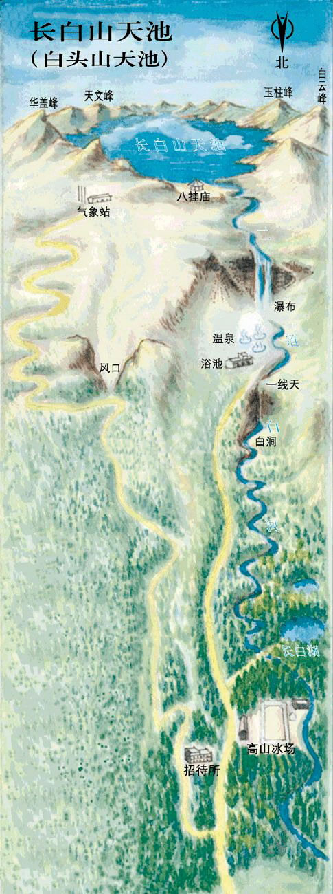 長(zhǎng)白山天池是中國(guó)境內(nèi)保存最為完整的新生代多成因復(fù)合火山,天池在宋朝以后多有噴發(fā),清光緒三十四年(1908年)起,劉建封登上白云山,為天池十六峰命名,探明鴨綠、松花、圖們?nèi)戳。天池周(chē)鹕娇诒诙盖停⑿纬墒畮鬃h(huán)狀山山峰,海拔均在2500米以上,長(zhǎng)白山天池也是松花江、鴨綠江以及圖們江的發(fā)源地,素有“三江之源”的雅稱(chēng)。