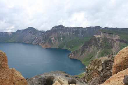 長(zhǎng)白山天池,又稱(chēng)白頭山天池,坐落在吉林省東南部長(zhǎng)白山自然保護(hù)區(qū)內(nèi),是中國(guó)和朝鮮的界湖,雙方各擁有一部分水域。天池南北長(zhǎng)約4400米,東西寬約3370米,其池水的海拔高度為2189.1米,最深處為373米,平均204米,水面面積9.82平方千米,周長(zhǎng)13.1千米。據(jù)《長(zhǎng)白山江岡志略》記載:“天池在長(zhǎng)白山巔的中心點(diǎn),群峰環(huán)抱,離地高約20余里,故名為天池。”