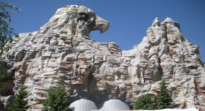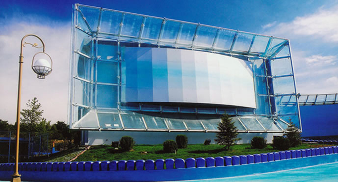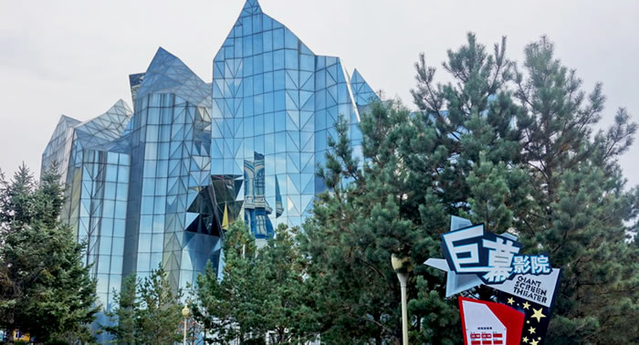 巨幕影院,位于長影世紀(jì)城西南部,建筑外形酷似冰山,內(nèi)部座位400個,設(shè)有高18米、寬25米熒幕,稱為巨幕影院,6.1聲道的立體效果,和立體特效影像相結(jié)合。