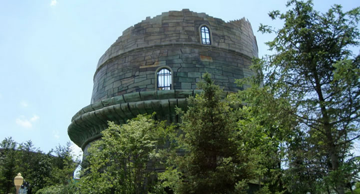 斗轉(zhuǎn)星移,位于長影世紀(jì)城西側(cè),建筑外形為“倒種”的房子,是電影特技中光影展示,利用光影特效手段,揭示光影世界中的飛行奧秘。