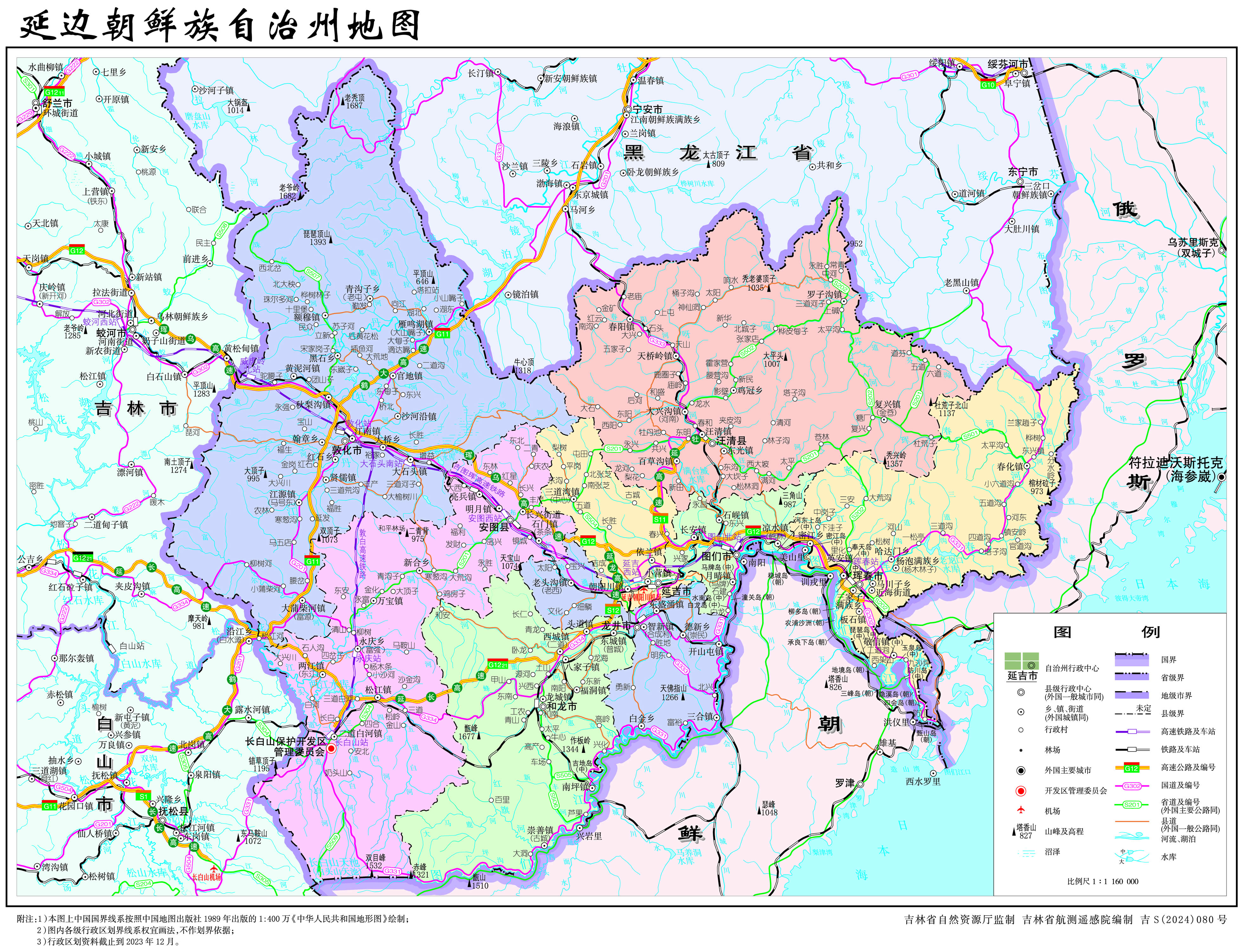 延邊朝鮮族自治州位于吉林省東部,地處中、朝、俄三國交界,面臨日本海,東與俄羅斯濱海邊疆區(qū)接壤;南隔圖們江與朝鮮咸鏡北道、兩江道相望;西臨吉林市、白山市;北接黑龍江省牡丹江市。州內有5個邊境縣(市),642個邊境村屯;邊境線總長768.5千米,中朝邊境線522.5千米,中俄邊境線246千米。全州土地總面積為4.33萬平方千米,約占吉林省總面積的四分之一。