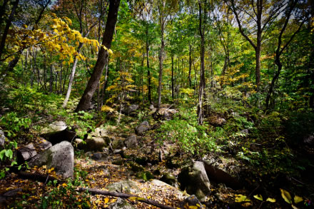 三塊石森林公園以三塊石山(又稱煙囪山)命名,主峰海拔1131米,坐榮譽(yù)稱號于長白山老龍崗余脈南麓,三塊石自然保護(hù)區(qū)位于撫順市東南部,撫順縣境內(nèi),東與新賓縣木奇鎮(zhèn)接壤,南與撫順縣馬圈子鄉(xiāng)為鄰,西、北與撫順縣上馬鄉(xiāng)相連,包括國有撫順縣三塊石、五龍林場部分國有林區(qū)和后安鎮(zhèn)、湯圖鄉(xiāng)部分集體林區(qū),距撫順市52公里。規(guī)劃總面積10434公頃(156510畝)。其中林業(yè)用地10357.6公頃,有林地9901.6公頃,無林地251.3公頃,水域76.5公頃,森林總蓄積量931856立方米,森林覆被率94.9%。因在高山之巔有三塊長50余丈巨石昂然劍立,直入云端而揚(yáng)名。