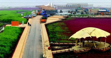 紅海灘四月初為嫩紅,漸次轉(zhuǎn)深,十月由紅變紫,最佳觀賞時間為五月至十月。這里魚肥蟹美,稻米飄香,海鷗與抽油機為伴,紅海灘與丹頂鶴相映,現(xiàn)代文明與原生文明共生。它以舉世罕見的紅海灘為特色,以全球保存最完好、規(guī)模最大的濕地資源為依托,以世界最大的蘆葦蕩為背景,與數(shù)以萬計的珍稀水禽和一望無際的淺海灘涂構(gòu)成了一條生態(tài)風景廊道。它左側(cè)是旖旎延綿的紅海灘,右側(cè)是一望無際的蘆葦蕩。在春夏時節(jié),它們紅綠相濟;在秋冬時節(jié),它們金紅相映,一路貫通。