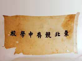 東北競存中學(xué)校旗:這面校旗,雖然多處損破,但這面旗幟是人民宣傳和進行抗日救亡活動的光輝旗幟。
