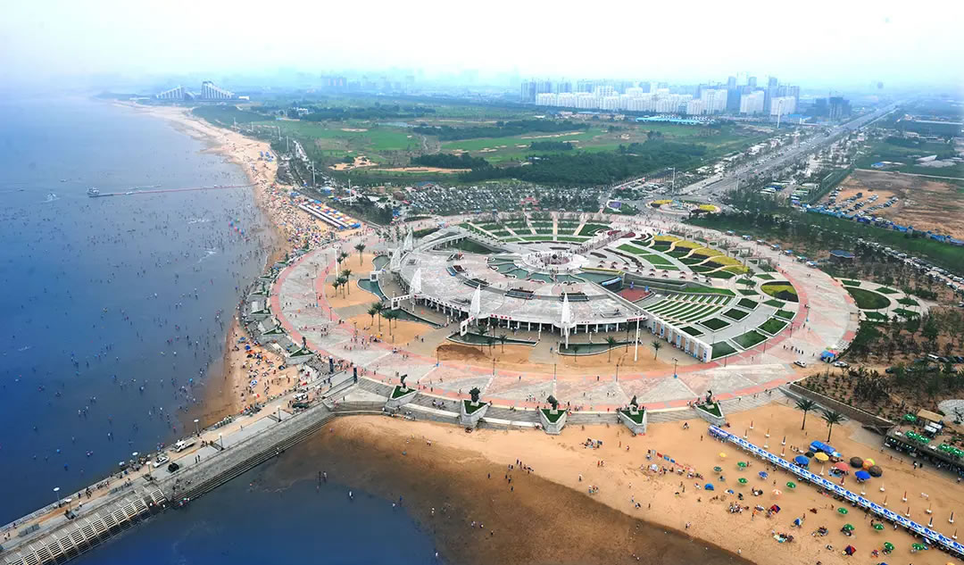 山海廣場(chǎng)占地面積約10萬平方米,其中廣場(chǎng)主體建筑用地6萬平方米,廣場(chǎng)分為兩層,一層是月牙灣海濱浴場(chǎng)的商業(yè)網(wǎng)點(diǎn),二層是由綠化帶、景觀燈飾、音樂噴泉等組成的觀海平臺(tái)。其主要景觀有入口廣場(chǎng)誠信笛雕塑、8個(gè)反映營(yíng)口地區(qū)歷史和民俗的漢白玉浮雕墻、銅制海珠石、海洋十二生肖銅制雕塑以及下沉式演藝廣場(chǎng)等。